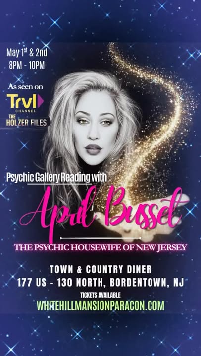 April Busset, The Psychic Housewife of New Jersey, is a renowned Celebrity Psychic Medium and a natural-born clairvoyant. She is the visionary creator, founder, and CEO of Ghosted Magazine, a remarkable success that inspires and captivates the world of the paranormal. Her work has been featured on the Travel Channel’s “The Holzer Files” in the Lambert Castle episode and Haunted Hotels. April has collaborated with well-known TV paranormal celebrities to investigate the most notoriously haunted locations. April’s unique abilities to connect with spirits have been instrumental in resolving intense hauntings and possessions throughout the United States, providing comfort and closure to her clients. She has also named a killer live on her show “Cocktails & Readings With April, The Psychic Housewife of New Jersey”. April’s journey into the world of spirits began at the age of four when her deceased father visited her two years after his passing. Her remarkable accuracy in relaying messages from spirits in the most haunted locations in the United States is a testament to her unique connection with the spirit world. April is on an exhilarating journey across the United States, captivating thousands with her uplifting gallery readings as they seek to reconnect with loved ones from the other side. She is currently filming a new show that will soon air on a major network. Stay tuned for more updates on this exciting project. April currently does private readings for thousands of clients worldwide. She resides in New Jersey with her husband and daughter. To learn more about her, visit her website at IntuitiveApril.com.